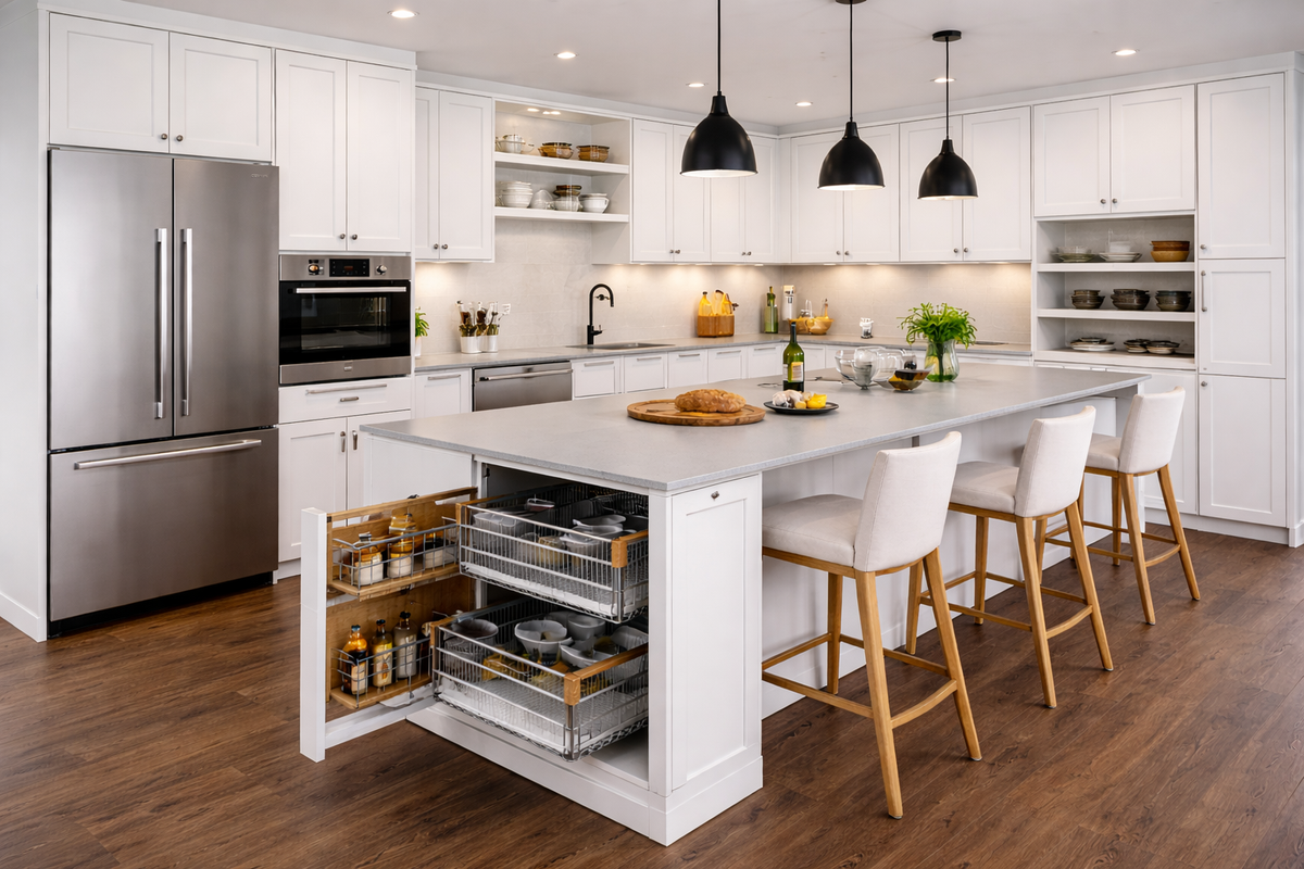 See how our white shaker cabinets transformed this kitchen from outdated to modern elegance.